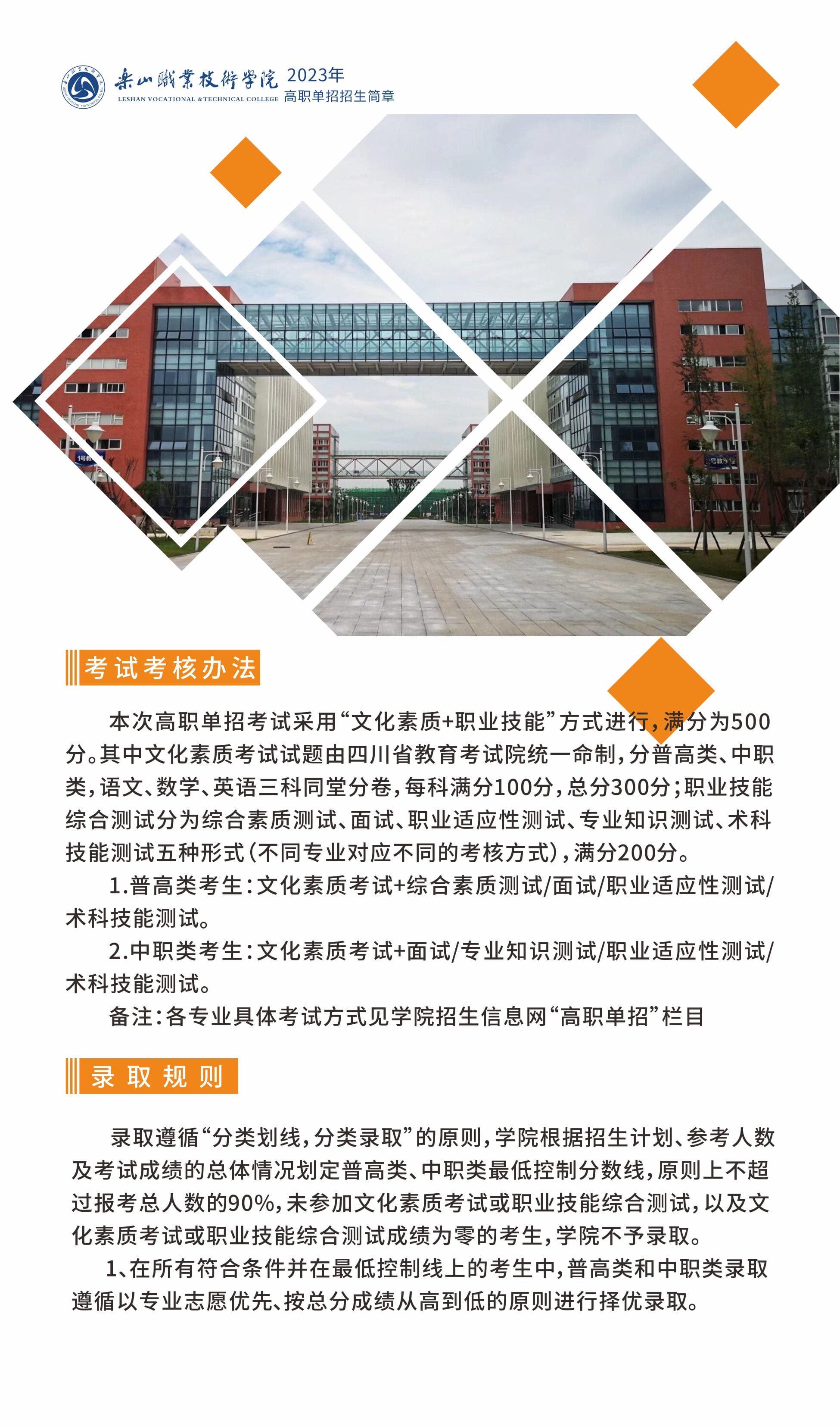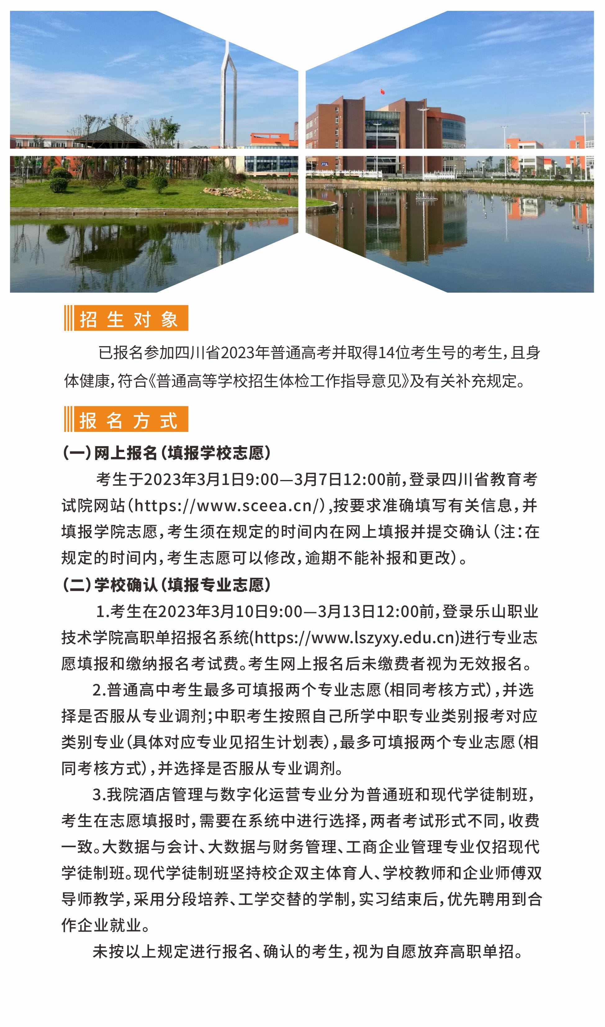 乐山职业技术学院2023年高职单招招生简章